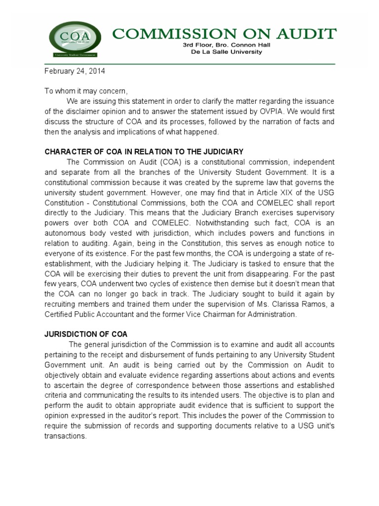Commission On Audit Meaning : Why are auditor's opinions named this way? - Quora / Making wall street work for main street means getting your input.. An auditor has to verify the following receipts and vouchers in a hotel audit. Jun 27, 2019 · the commission's 2003 adopting release (release no. An audit is an unbiased examination and evaluation of the financial statements of an organization. An unqualified audit report is an audit report that gives a clean chit to the financial statements representing a true and fair view of the financial position of the. (b) except as provided in s.